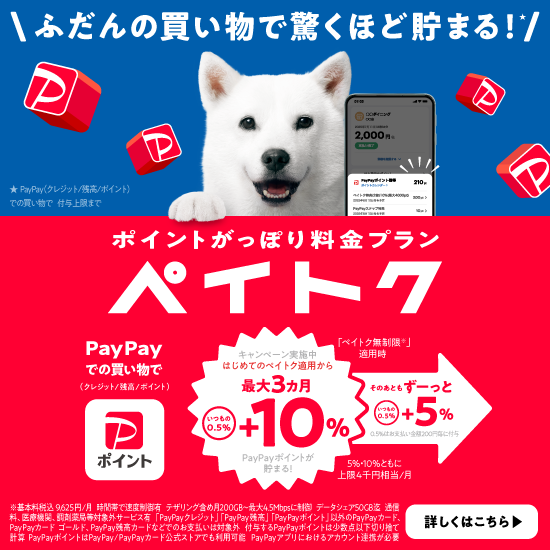 オトク オドロク ペイトク 料金プラン いろんなお店でいつでも PayPayポイントが驚くほど貯まる 詳しくみる