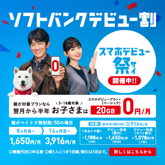 ソフトバンクデビュー割。スマホデビュー際開催中