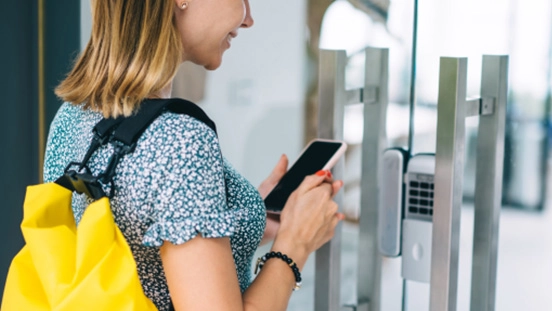 スマートフォン操作や、入館用QRコードをタブレットにかざすことで、スマートロックを解錠し、シームレスな入館を実現