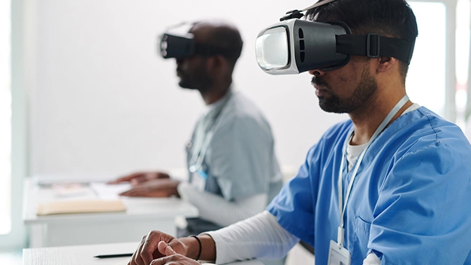 夜間を想定した業務訓練や危険を伴う作業の安全講習などを、仮想空間で疑似的に経験できます。VR機器があればどこからでも受講ができるため、研修のために遠方から大勢を集める必要がありません。