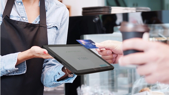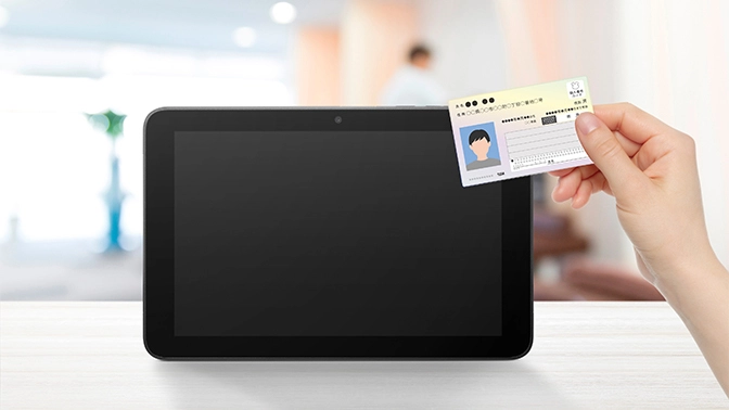 前面のディスプレー側にNFCが搭載されているため、お客さまに必要な情報を画面でご覧いただきながら、マイナンバーカードの利用や、交通系ICおよびクレジットカードによるタッチ決済などさまざまなシーンで、スムーズなタッチ操作を行っていただくことが可能です。さらに、決済ソリューションのMPoC/CPoC※1に対応しているため、NFCリーダーを付けずに一台で決済専用端末として使用することができます。