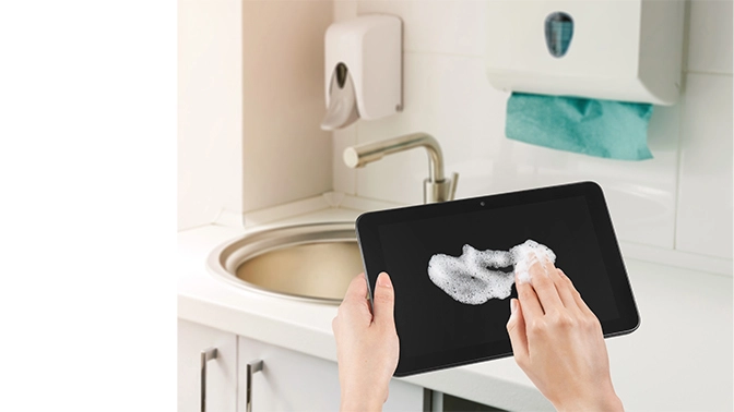 高さ75cmからの落下を想定した試験もクリアする耐落下性能※2を備えている他、IPX5/IPX8の防水とIP6Xの防じんに対応※3しています。さらに、泡タイプのハンドソープでの手洗い・すすぎ洗浄や、アルコール除菌シートでの拭き取りができるため、汚れが気になる環境でも使用することが可能です※4。