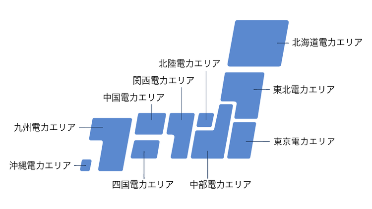 北海道電力エリア・東北電力エリア・東京電力エリア・中部電力エリア・関西電力エリア・中国電力エリア・四国電力エリア・九州電力エリア・沖縄電力エリア