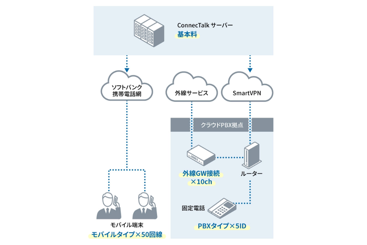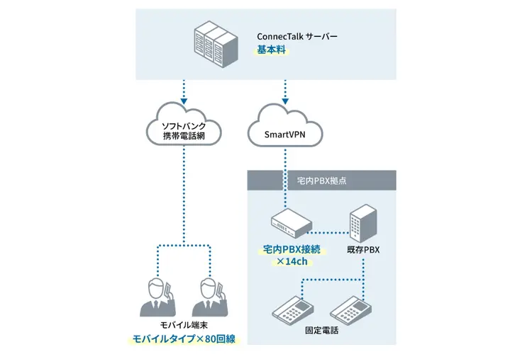 オンプレミスのPBXとConnecTalkを接続し、PBXに接続されている電話機との内線通話や、PBXに接続されている固定電話回線を利用した外線通話をされるお客さま向け