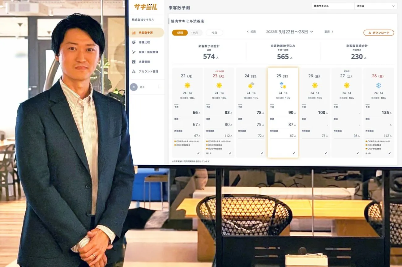 AI需要予測サービス「サキミル」は、飲食店や小売店で日々発生する食品ロスという社会課題に対し、ソフトバンクの人流統計データと日本気象協会の気象データ、店舗の各種データを掛け合わせた高精度な需要予測を提供。これまで担当者の経験と勘に頼りがちだった消費期限の短い惣菜やパンなどの発注・製造量を最適化し、食品ロスの削減を実現しました。