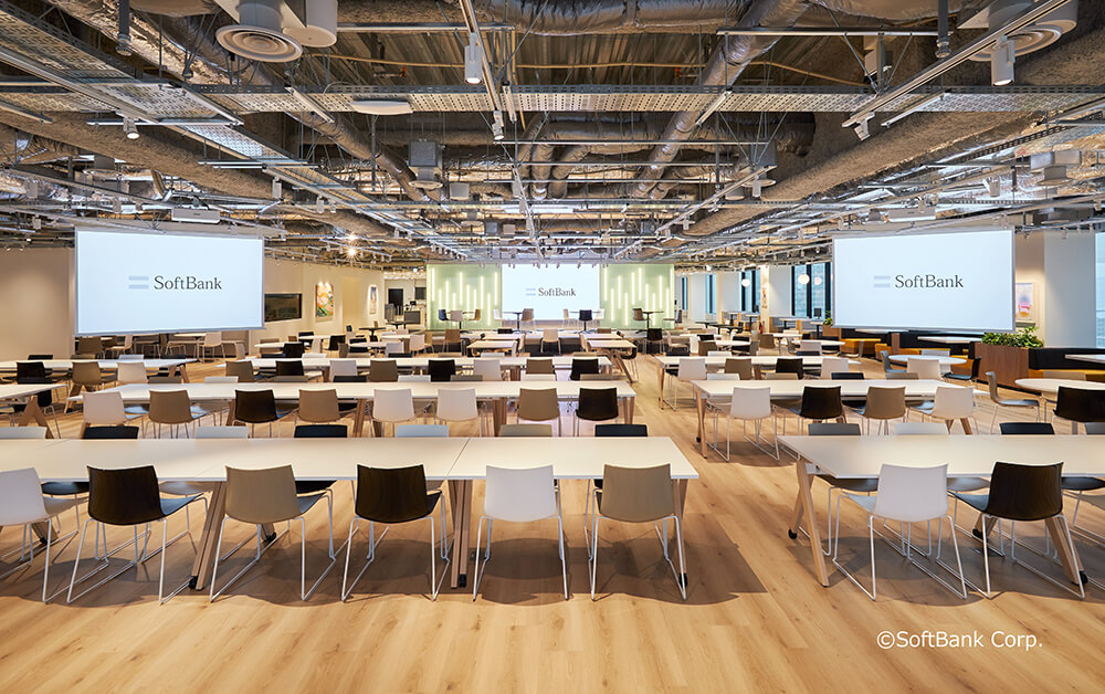大型モニターやステージがあり、部門やチームのキックオフや講演会などのイベントが行われます。
