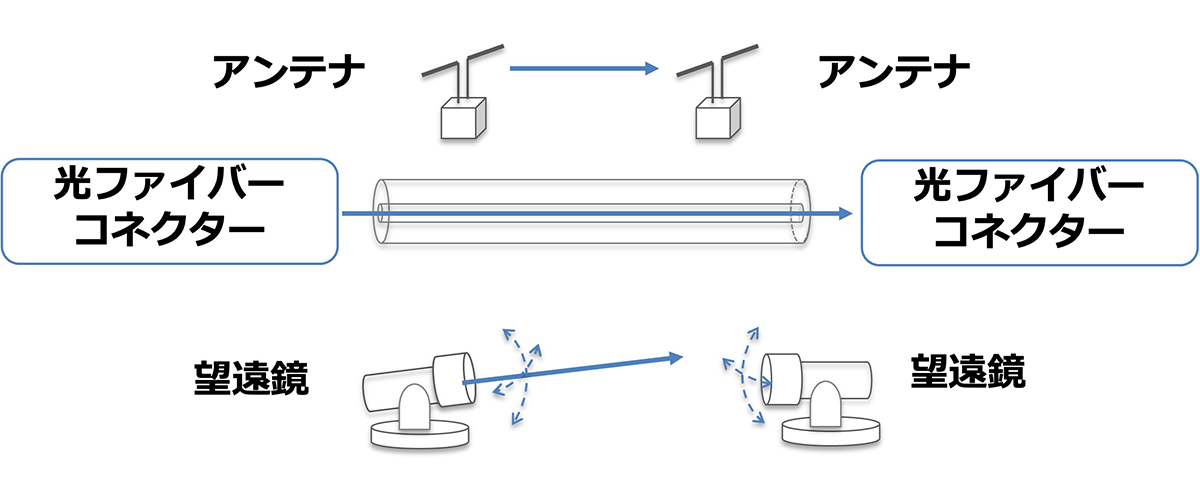 図1. 電波にくらべ精密な軸合わせを要求される光で無線通信を行うことになる