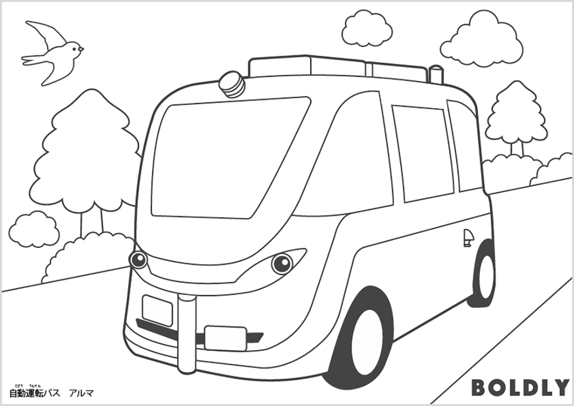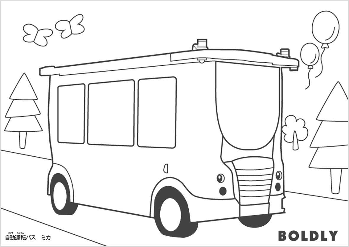 自動運転バスをぬりえにしました♪