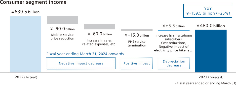 We are also factoring in a decline in gross profit on handset sales due to a decrease in the number of handsets shipped compared to the fiscal year ended March 31, 2022; a downturn in Electricity following its strong performance in fiscal year ended March 31, 2022; and a cost increase of ¥15 billion due to the termination of PHS service. The Consumer segment is facing a combination of these negative factors in the fiscal year ending March 31, 2023. However, the negative impact of the mobile service price reduction is expected to peak in the fiscal year ending March 31, 2023, shrink to ¥50 billion in the following fiscal year, and then flatten out in the subsequent fiscal years.