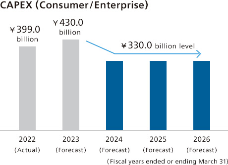 Capital expenditures (in the Consumer and Enterprise segments) are set to increase by 8% year-on-year to ¥430 billion in the fiscal year ending March 31, 2023. As of the fiscal year ended March 31, 2022, our 5G network achieved population coverage of over 90%, and in the fiscal year ending March 31, 2023, we will make concentrated investments to further expand our 5G rollout, in terms of both area and demand-driven spot enhancement, to complete our 5G network ahead of our competitors. Once that milestone is reached, I expect capital expenditures in the fiscal year ending March 31, 2024 and beyond to drop sharply by ¥100 billion to around ¥330 billion and then remain flat.
