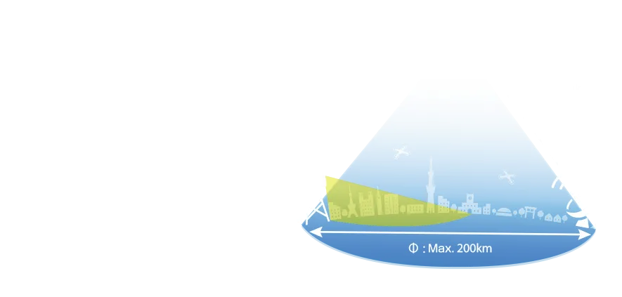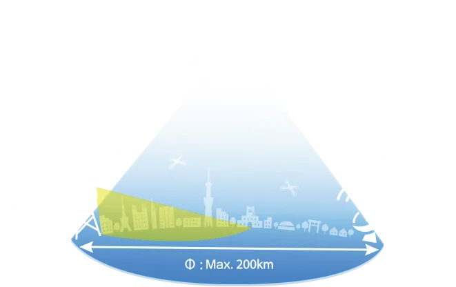 A single aircraft can cover a communication area of maximum 200 km in diameter, and it can be used in areas where communication networks are not available, such as the sky, remote islands, mountainous areas, and in developing countries, which are difficult to cover with ground base stations. Our HAPS systems will be able to build stable Internet connections in these regions.