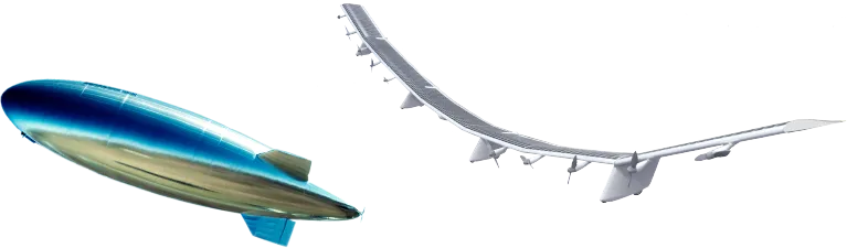 There are two types of aircraft system for HAPS. The LTA (Lighter Than Air) type, which is lighter than air and uses buoyancy to maintain flight, and the fixed-wing HTA (Heavier Than Air) type, which stays in the air with lift like an airplane.