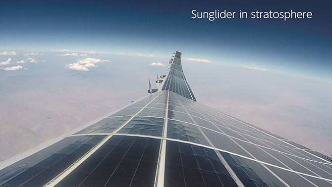 “Sunglider” is an unmanned aircraft system equipped with solar panels.