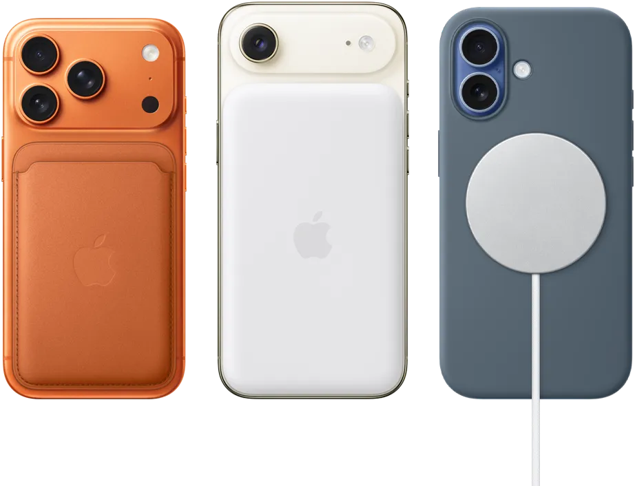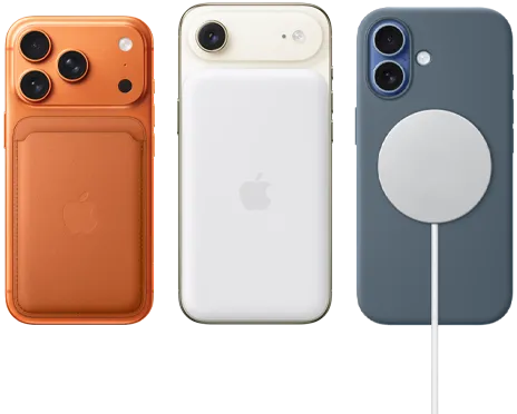 - Up to 50% Charge in 20 Minutes: Testing conducted by Apple in July 2025 using preproduction iPhone 17, iPhone Air, iPhone 17 Pro, and iPhone 17 Pro Max units and software, USB‑C Charge Cable with Apple 40W Dynamic Power Adapter with 60W Max (Model A3351), and Apple MagSafe Chargers (1-meter Model A3502 and 2-meter Model A3503) with Apple 30W USB-C Power Adapter (Model A2164) or Apple 40W Dynamic Power Adapter with 60W Max (Model A3351). Fast-charge testing conducted with drained iPhone units. Times measured from the appearance of the Apple logo as the unit started up. Charge time varies with adapter, settings, usage, and environmental factors; actual results will vary.
