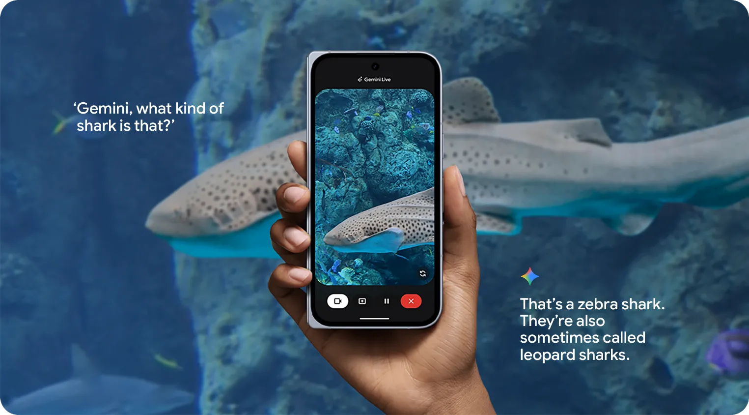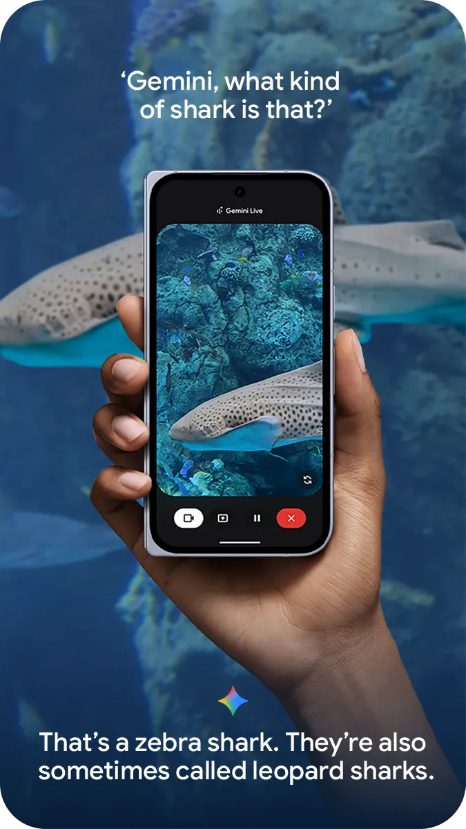 With Gemini Live, point your camera at what you’re curious about – like a sea creature at the aquarium – and talk it out in a natural conversation.5