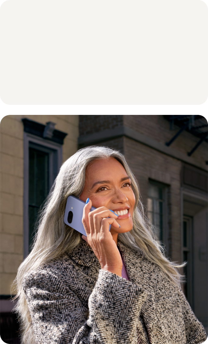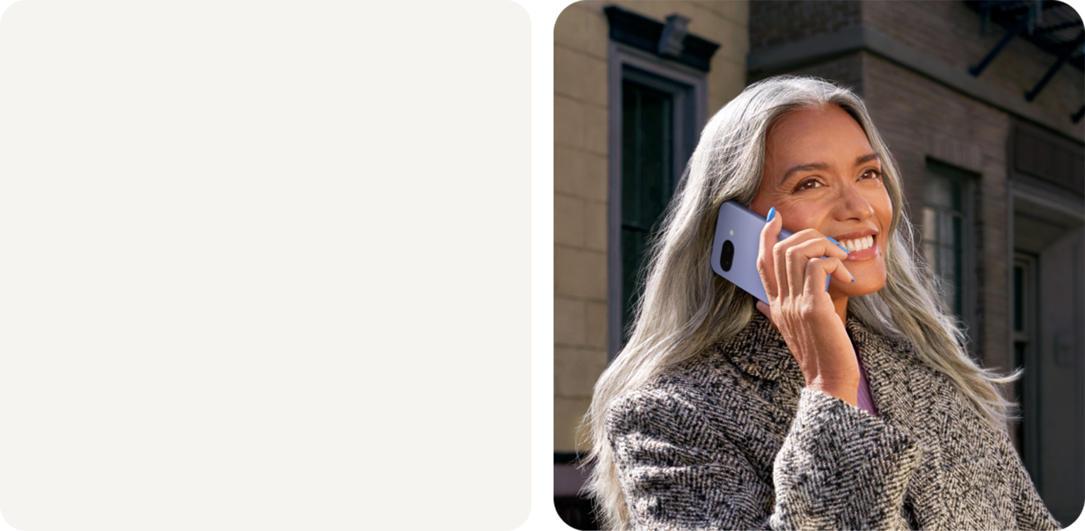 1 Made with recycled aluminum, glass, and plastic. These recycled materials are at least 23% of product based on weight. 2 Designed to comply with dust and water protection rating IP68 under IEC standard 60529 when each device leaves the factory but the device is not water or dust proof. The accessories are not water or dust resistant. Water resistance and dust resistance are not permanent conditions and will diminish or be lost over time due to normal wear and tear, device repair, disassembly or damage. Phone is not drop/tumble proof and dropping your device may result in loss of water/dust resistance. Damage from drops, tumbles, and other external forces is not covered under warranty. Liquid damage voids the warranty. See g.co/pixel/water for details. 3 For “over 30 hours”: Estimated battery life based on testing using a median Pixel user battery usage profile across a mix of talk, data, standby, and use of other features. For “up to 100 hours”: Estimated battery life based on testing using a median Pixel user battery usage profile across a mix of talk, data, standby, and use of limited other features that are default in Extreme Battery Saver mode (which disables various features including 5G connectivity). For both claims: Battery testing conducted on a major US carrier network in California in late 2024 on pre-production hardware and software using default settings, except that, for the “up to 100 hours” claim only, Extreme Battery Saver mode was enabled. Tests began with phones fully charged. Battery life depends upon many factors and usage of certain features will decrease battery life. Actual battery life may be lower. Over time, Pixel software will manage battery performance to help maintain battery health as your battery ages. See g.co/pixel/batteryhealth for details. 4 See g.co/pixel/updates for details on when your Pixel is eligible to receive Pixel Drops. Availability of some Pixel Drops may vary.