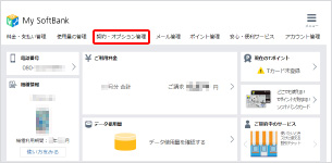 My SoftBankにログインし、「契約・オプション管理」を押します。