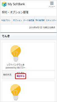 画面を下にスクロールし、でんきの契約状況で「確認」を押します。