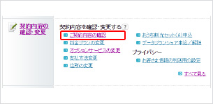 契約の確認・変更画面より確認が可能です。