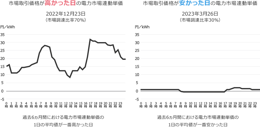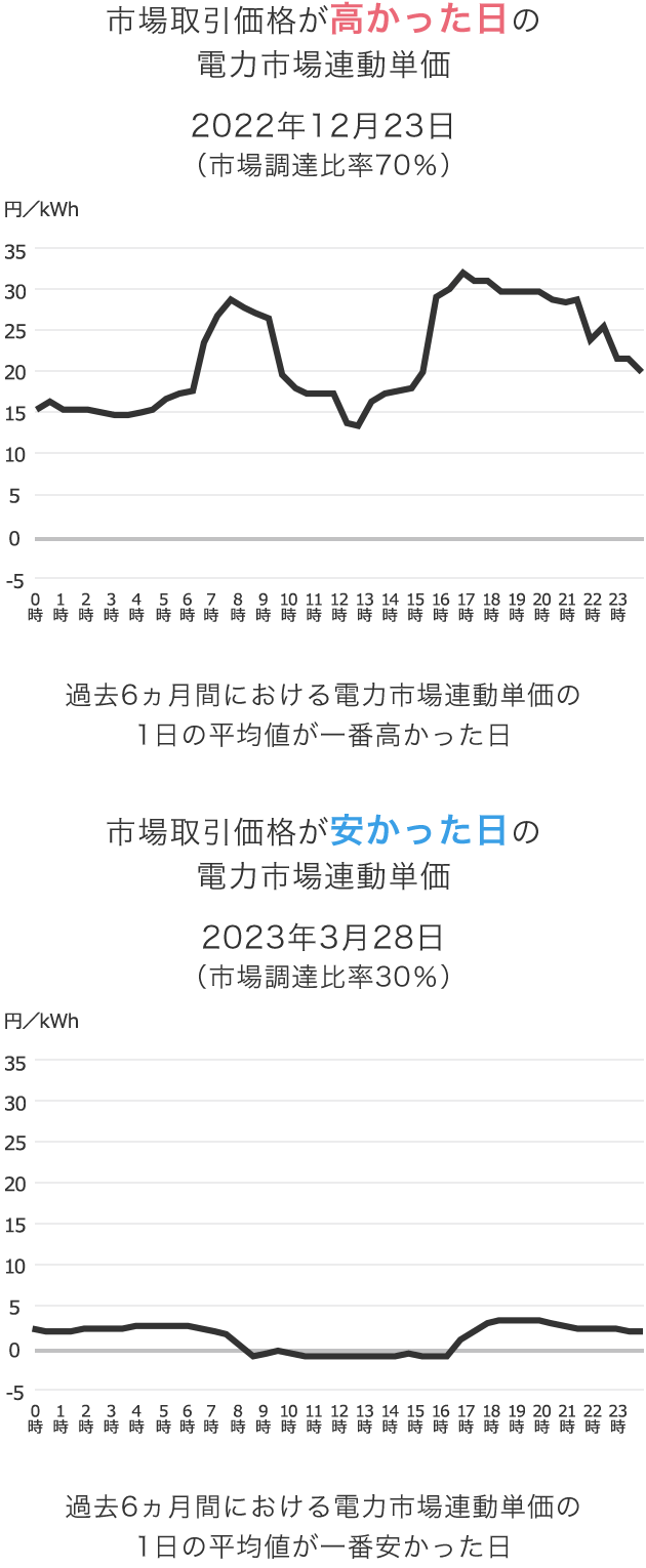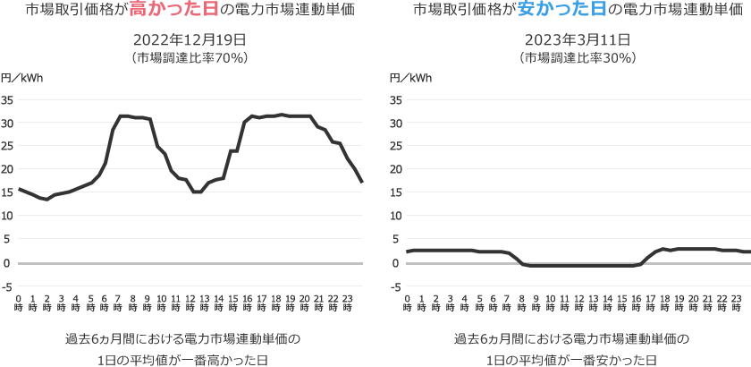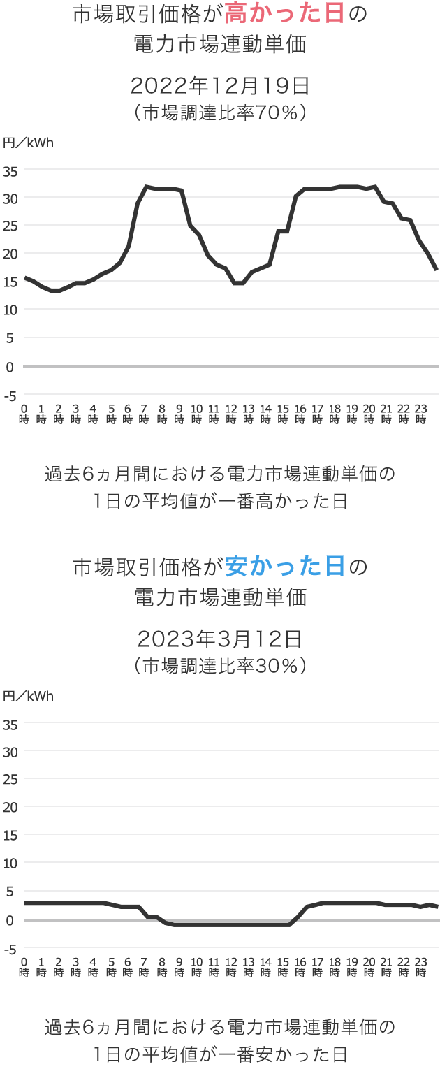 「電力市場連動単価」は、市場での電力の取引価格と連動するため、