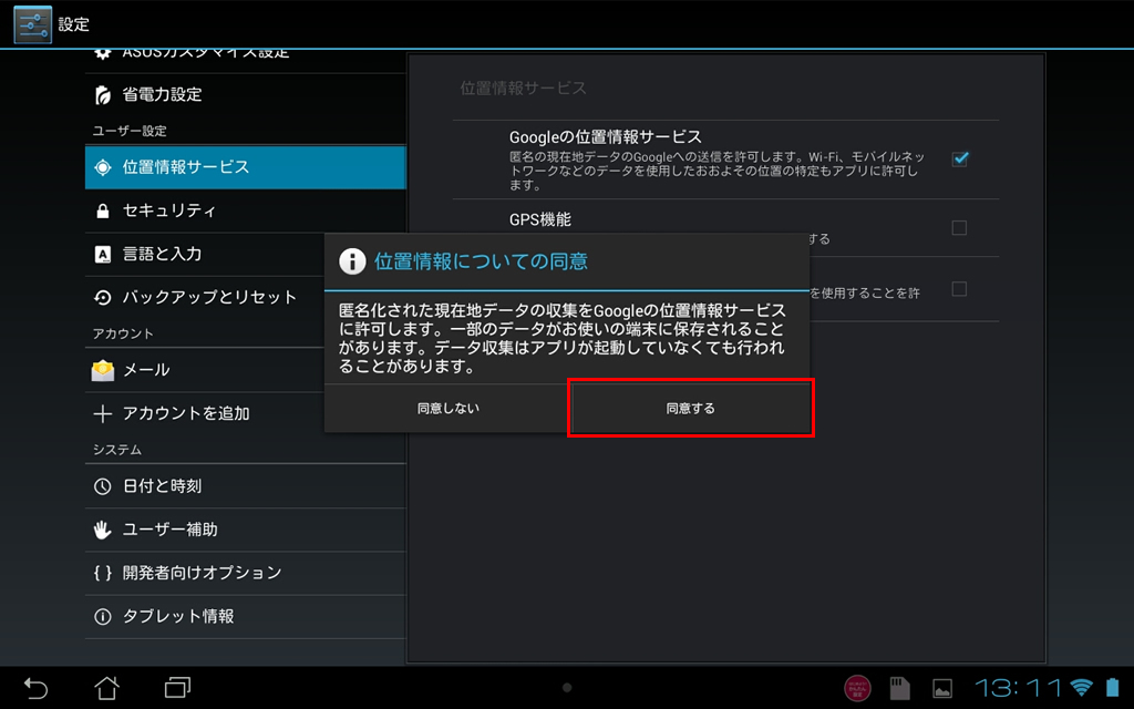 バリューパックのタブレット(ASUS MeMO Pad Smart ME301T)、アプリは以下の手順で設定してください。