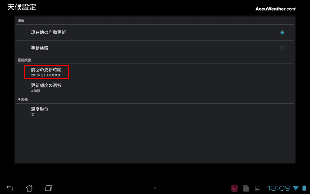 気象情報を表示する場合は、下記手順に沿って情報更新してください。