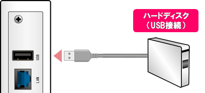 ハードディスクは別途ご用意ください。なお、接続したハードディスクのデータはすべて消去されますのでご注意ください。- 対応ハードディスクは下記FAQをご確認ください。
