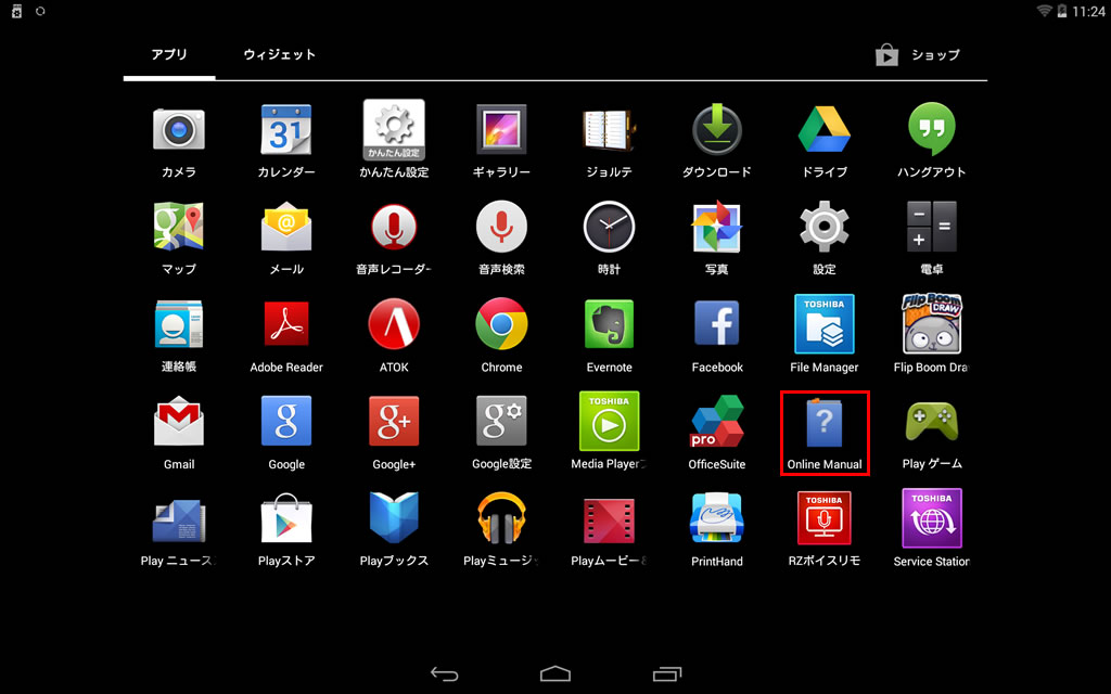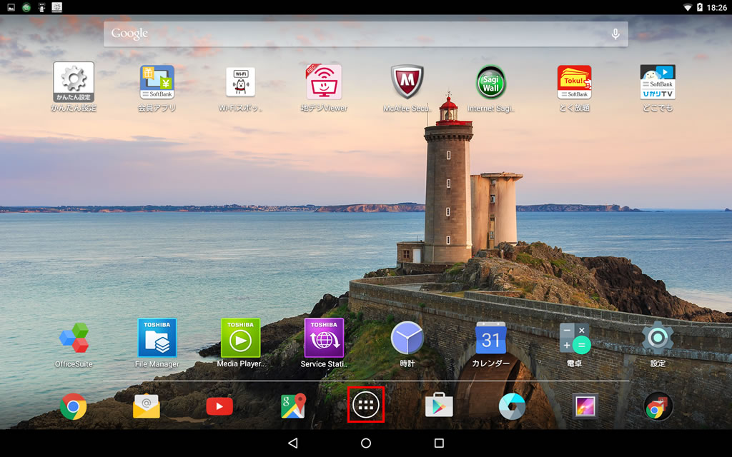 タブレット(TOSHIBA A205SB)、アプリは以下の手順で設定してください。