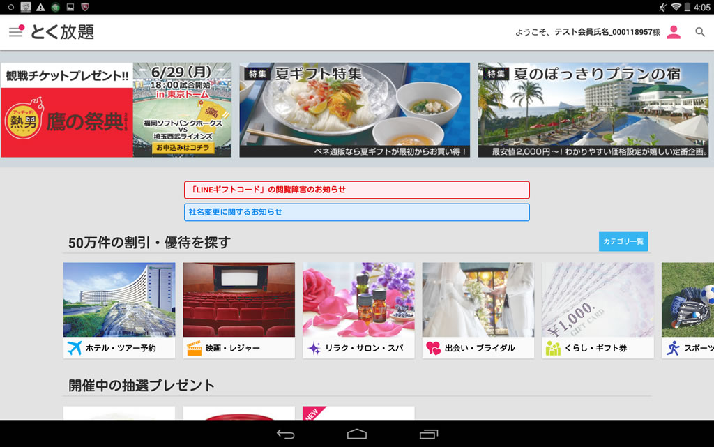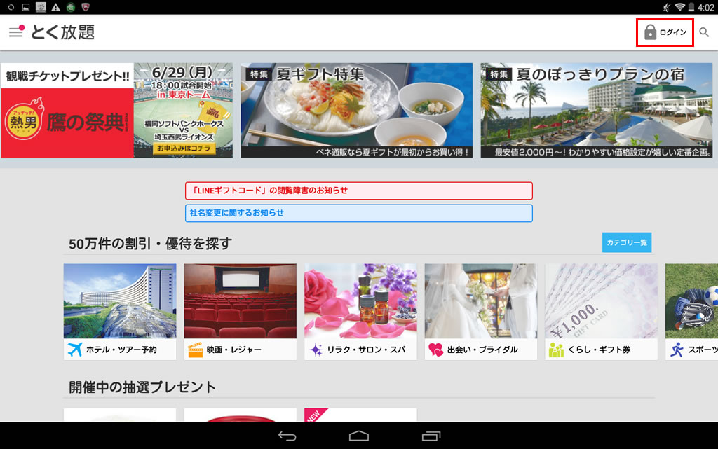 抽選で無料引換券プレゼントや、その他割引・優待特典が利用できます。