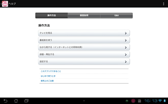 地デジViewer (R)の操作方法、Q&Aはアプリケーション内にヘルプとして記載しております。