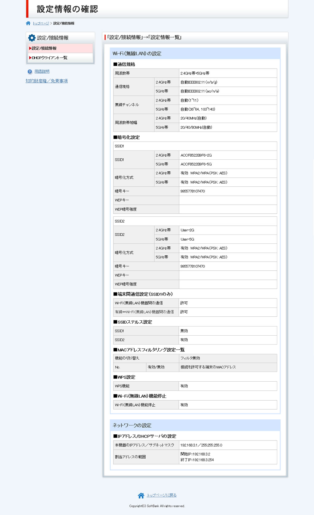 Airターミナル2/3/4/4 NEXT/5のSSID、暗号キー初期値