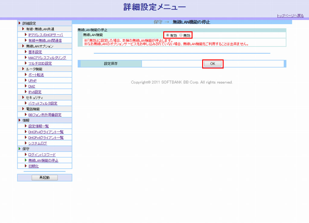 [有効]または[無効]を選択し、[OK]をクリックします。