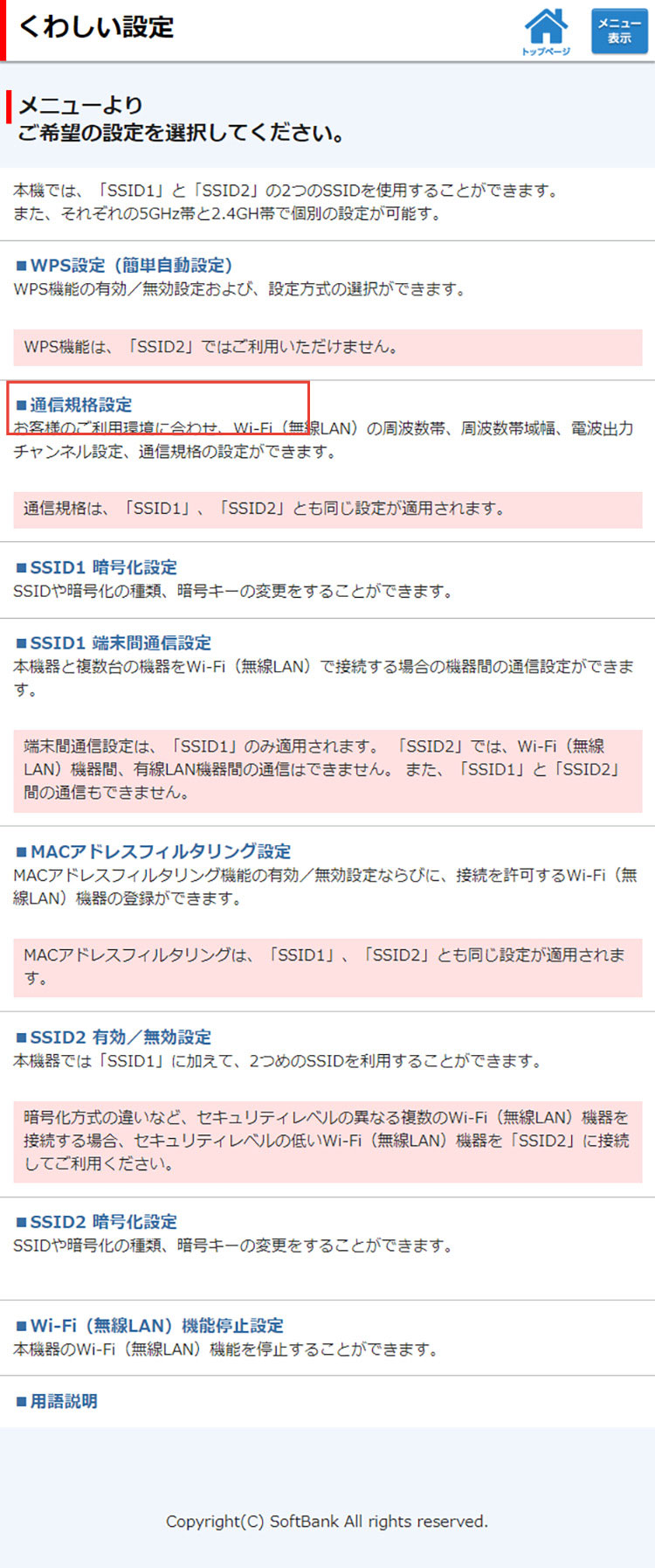 - ここで行う設定は、SSID1/SSID2の両方に適用されます。