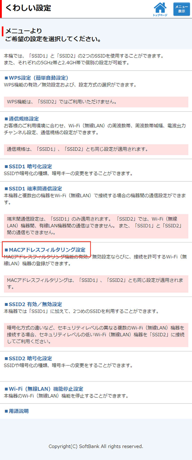 本項では、MACアドレスフィルタリング機能の設定ができます。