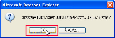 再起動確認の画面が表示されますので、[OK]をクリックします。