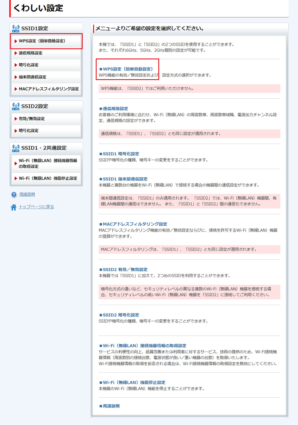 - SSID2では、WPS機能はご利用いただけません。