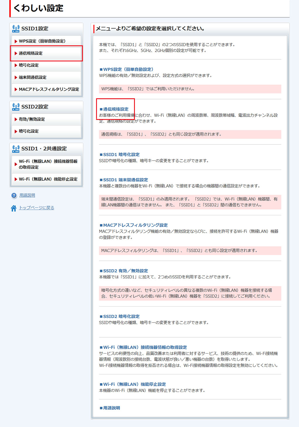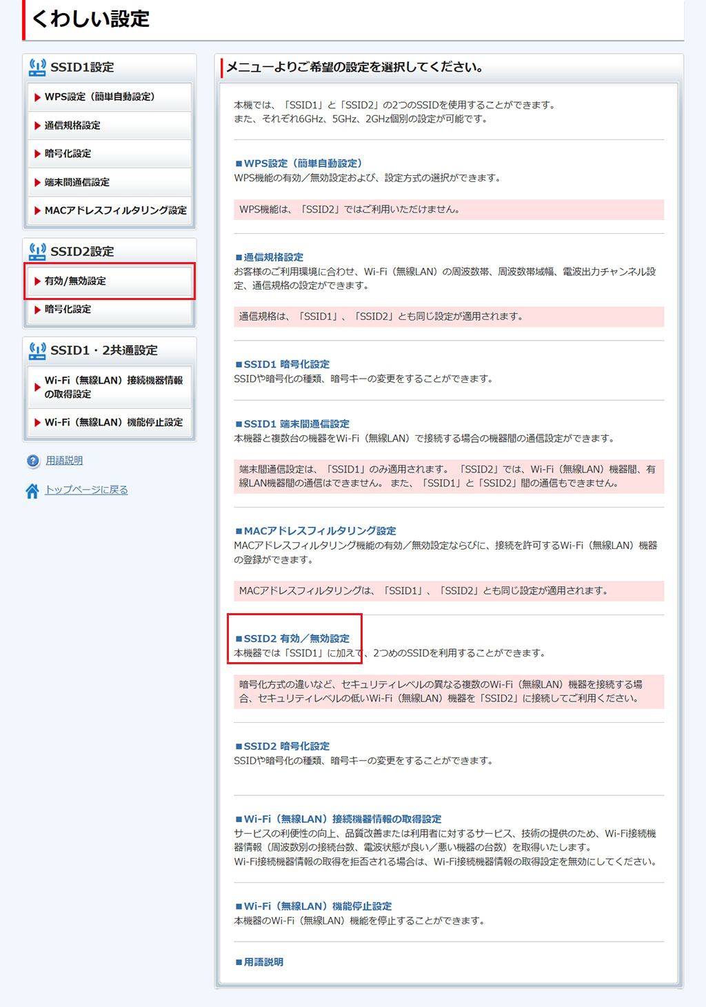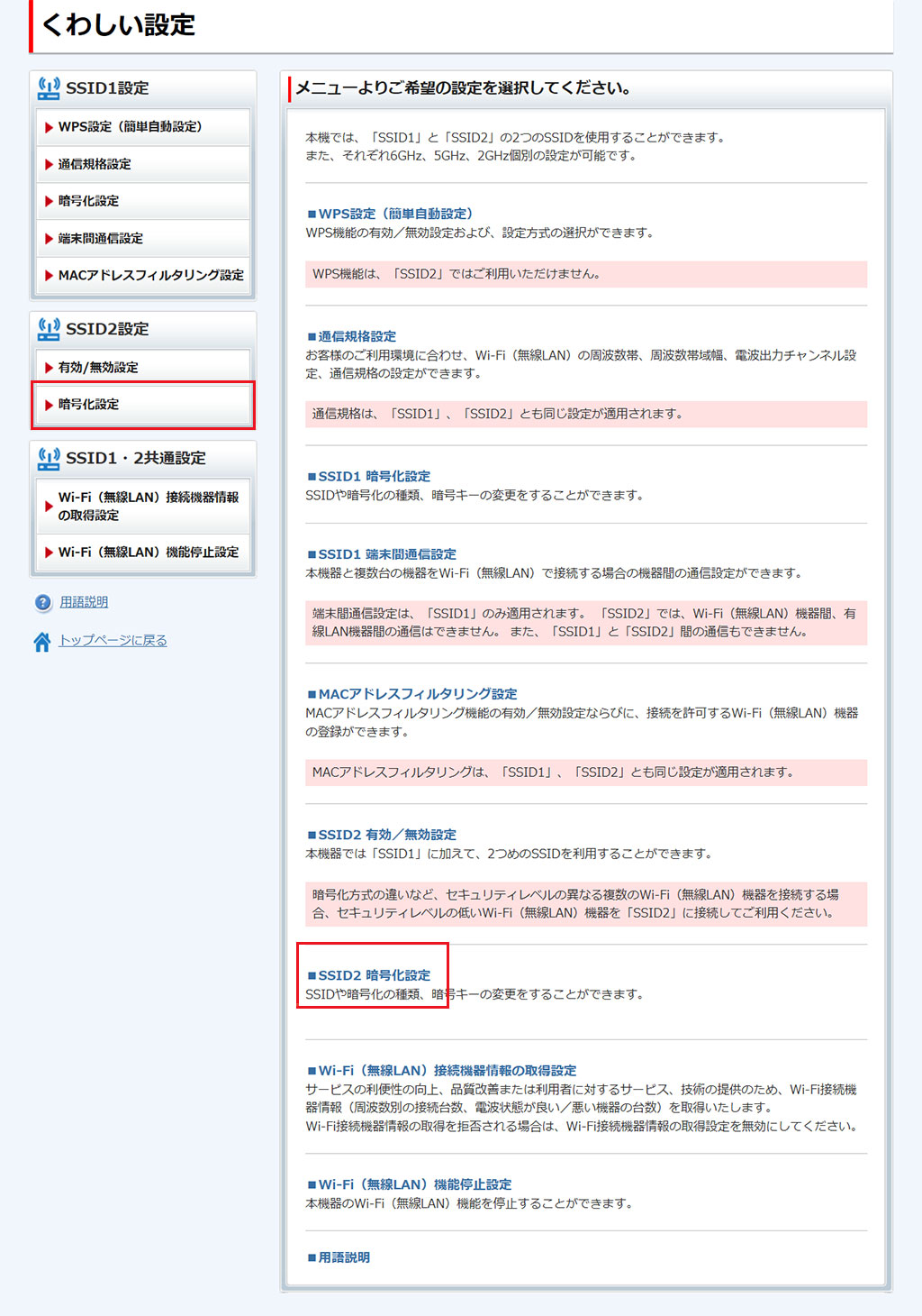 - ここで行う設定は、SSID1/SSID2の両方に適用されます。