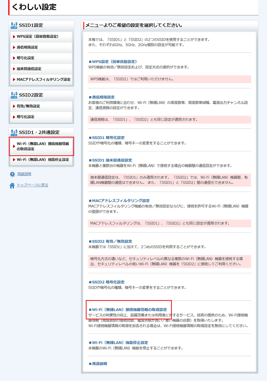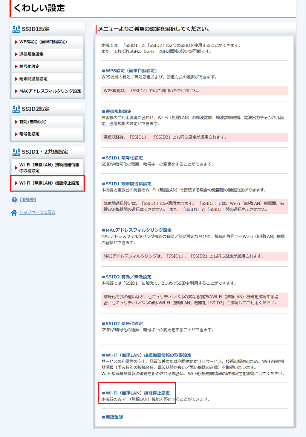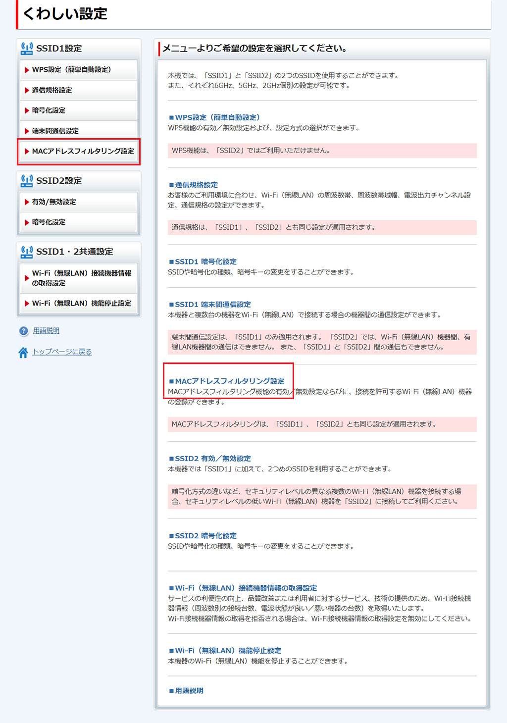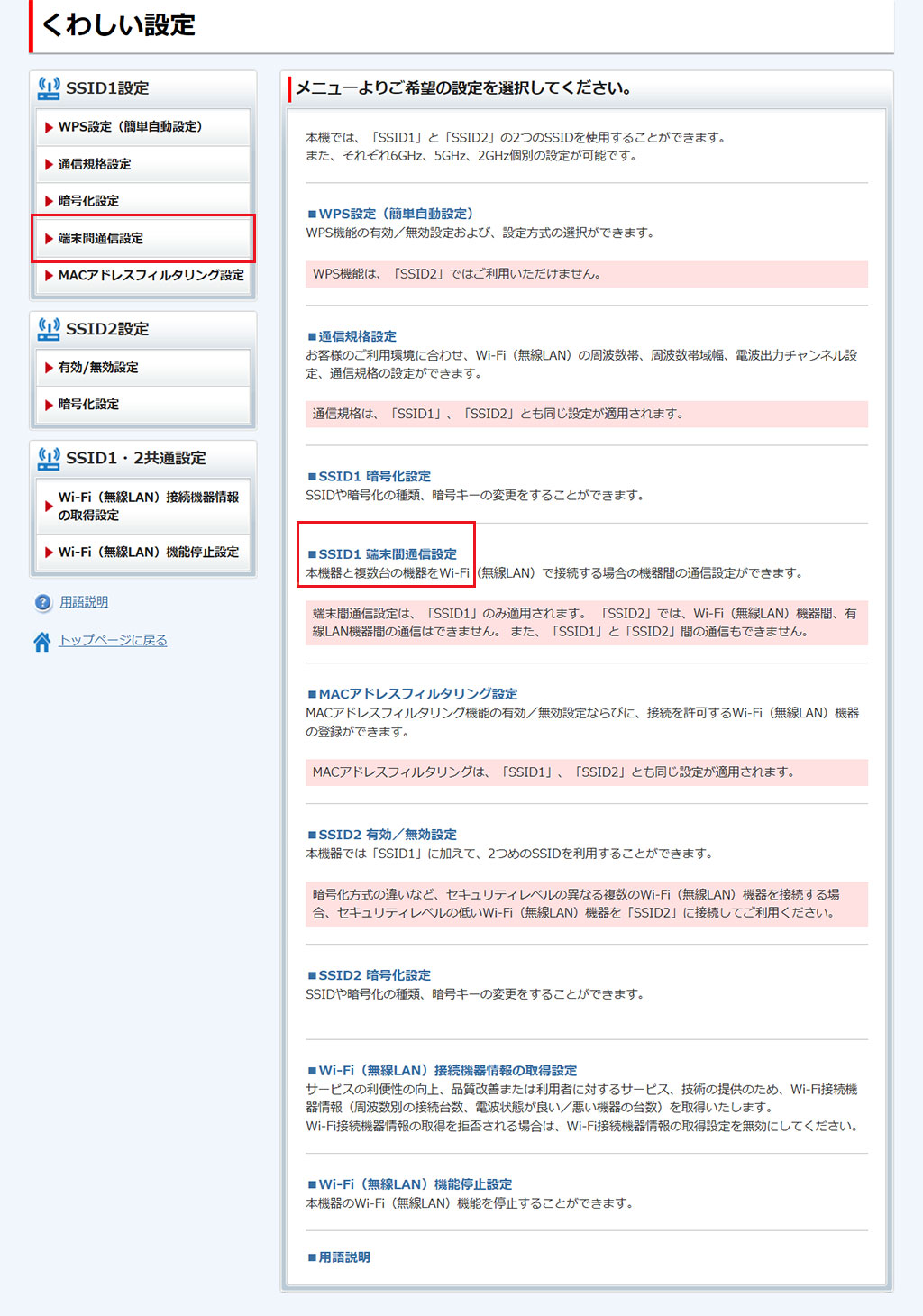 - ここで行う設定は、SSID1/SSID2の両方に適用されます。