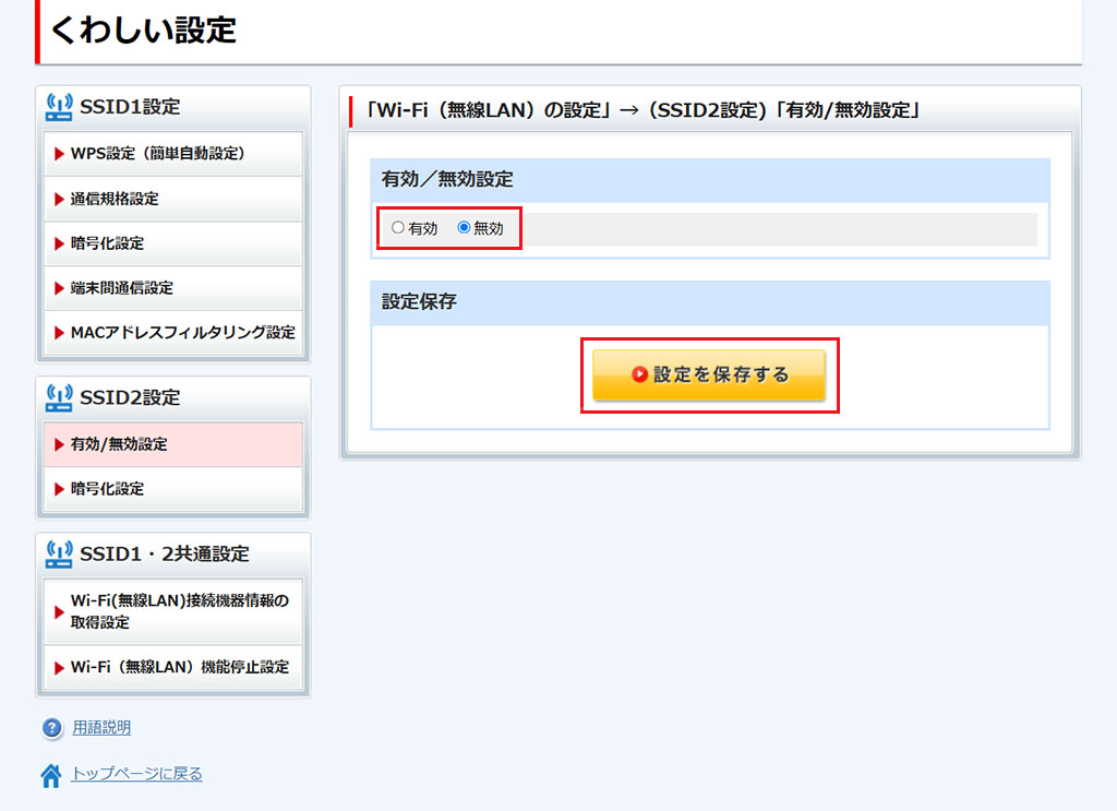 - ここで行う設定は、SSID2に適用されます。