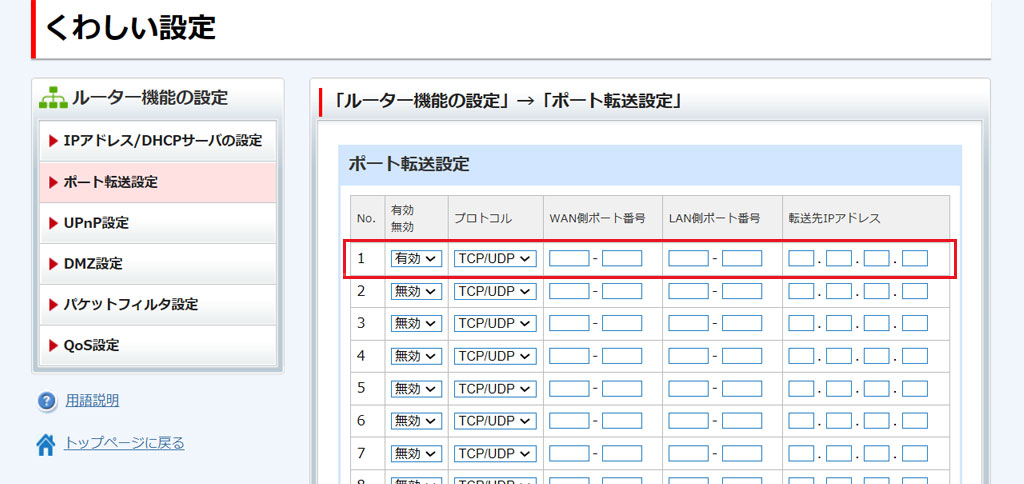 本項では、ポート転送に関する設定ができます。
