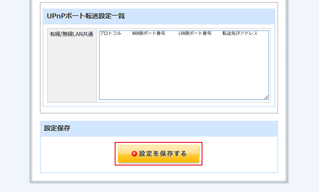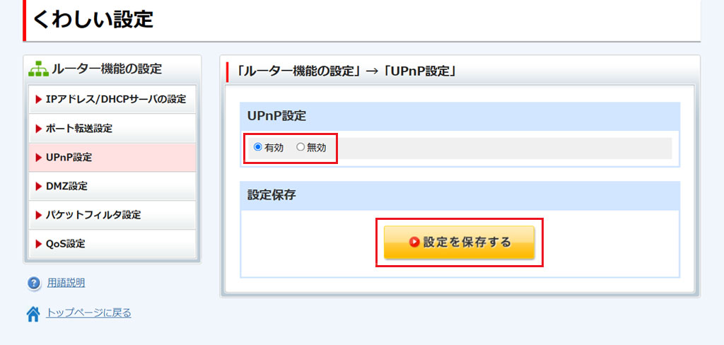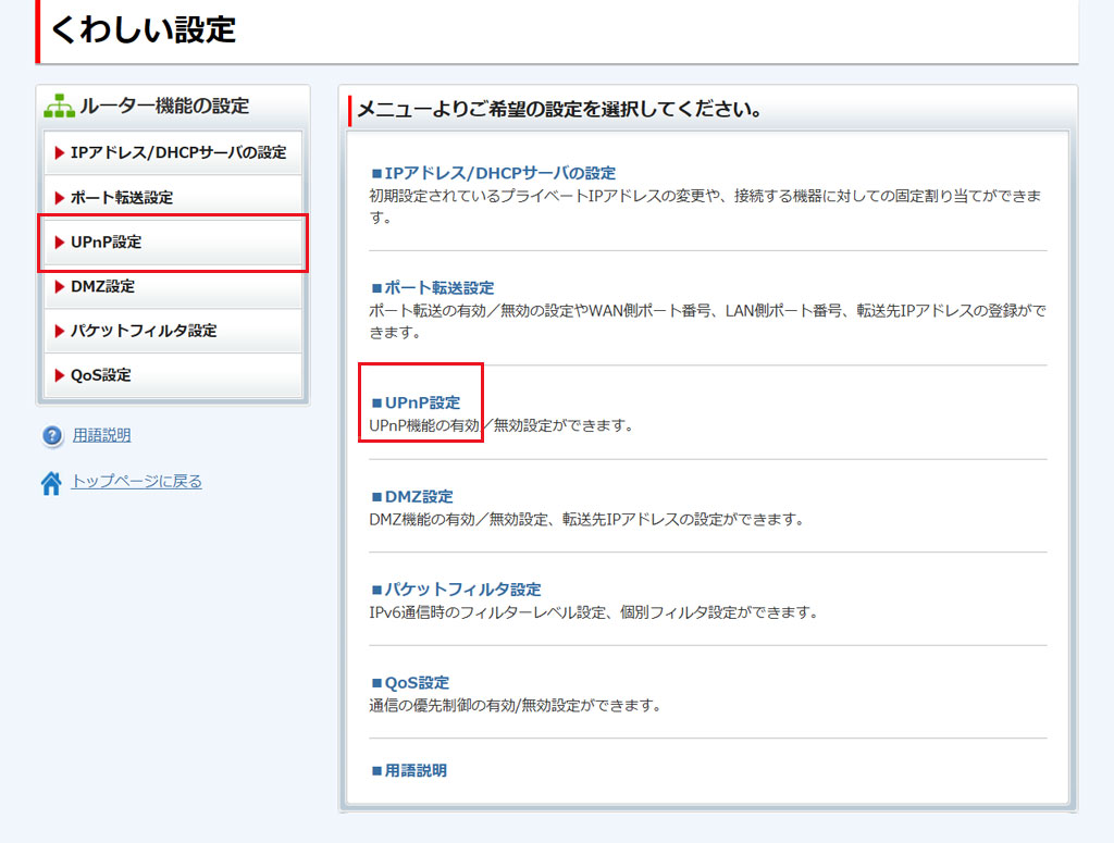 [UPnP設定]をクリックします。