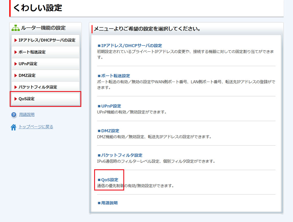 [QoS設定]をクリックします。
