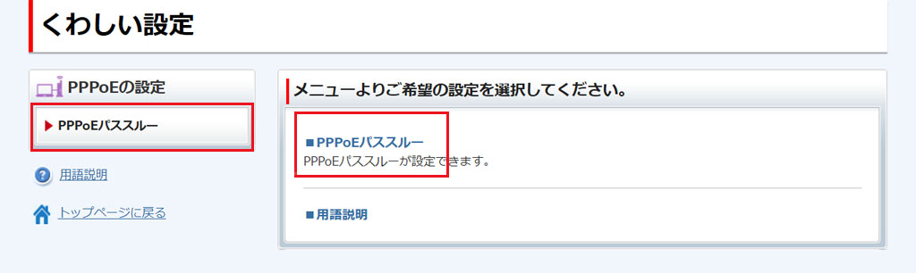 [PPPoEパススルー]をクリックします。