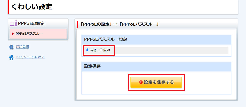 本項目では、PPPoEパススルーの有効/無効を選択できます。