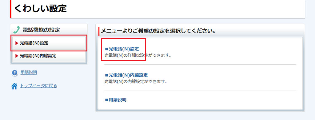 [光電話(N)設定]をクリックします。