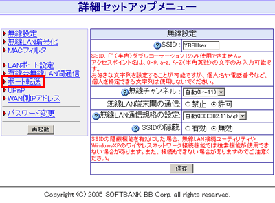 ポート転送設定は、インターネットを利用したアプリケーション(特定のオンラインゲームやメッセンジャー等)を利用する場合のみ必要となる設定であり、必ずしも設定が必要な項目ではありません。