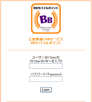 ブラウザを起動すると、自動的にBBモバイルポイントのログイン画面が表示されます。