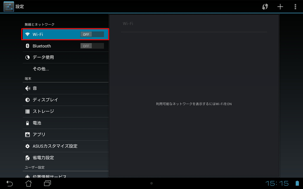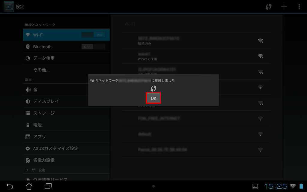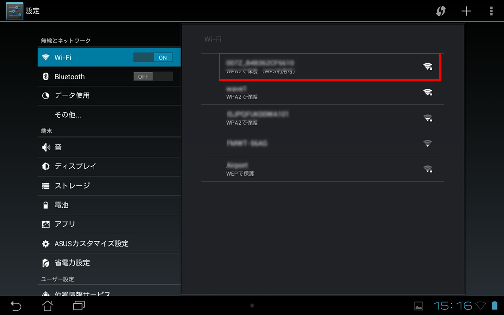 タブレットで光BBユニットにWi-Fi接続する場合は、以下の手順で設定してください。