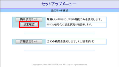 表示されたセットアップメニューから「設定確認」をクリックします。