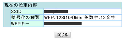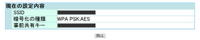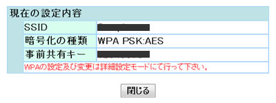 以上で、「SSID、暗号化キーの確認」は完了です。